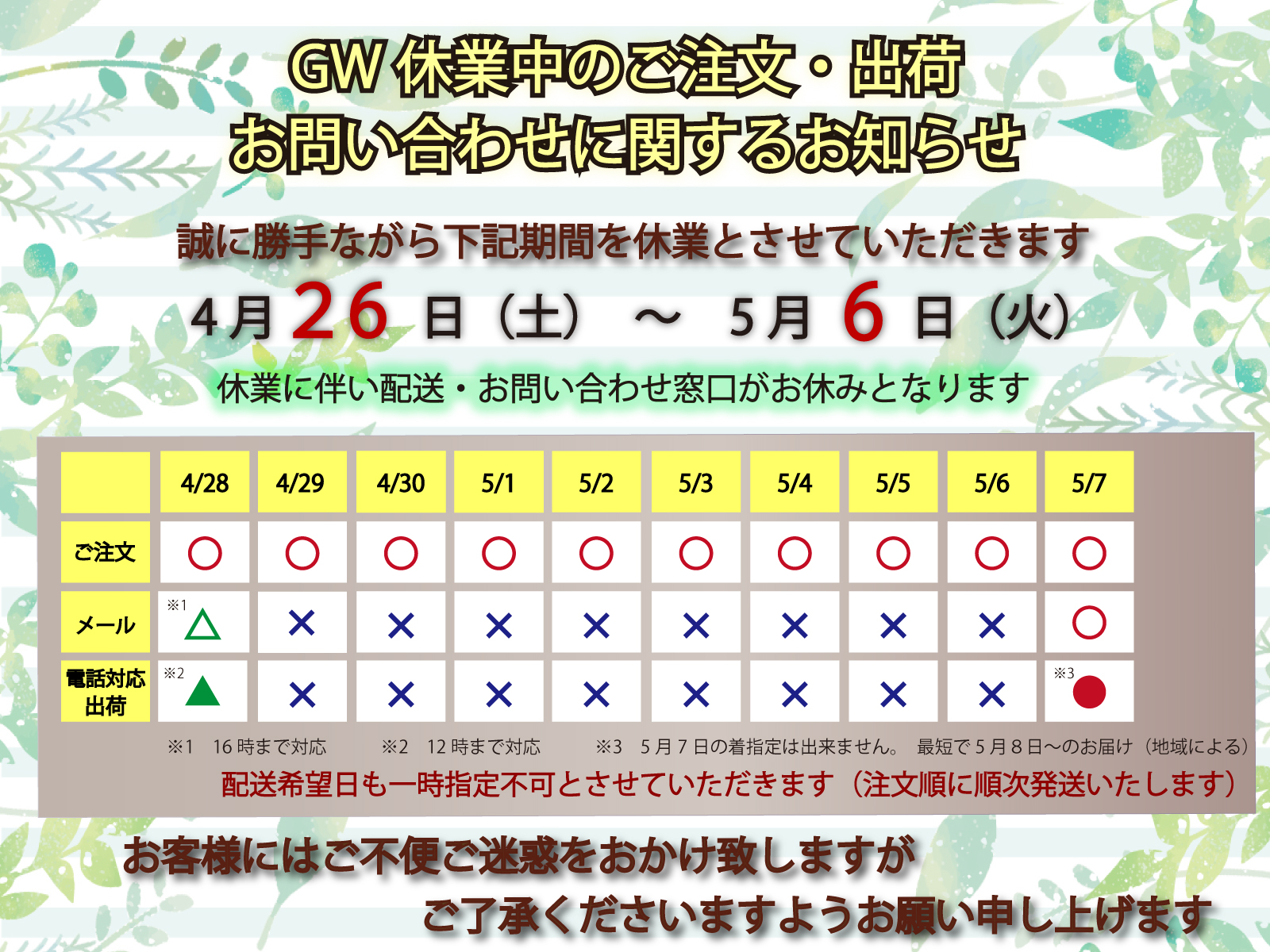 営業日のお知らせ